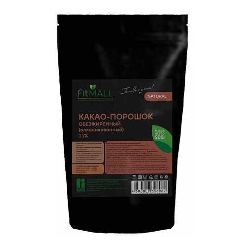 Какао-порошок обезжиренный ( алкализованный) 11% ТМ FitMall 500г (дой-пак)