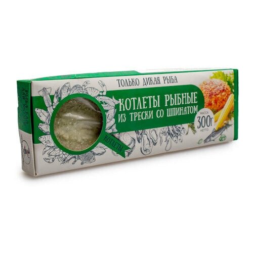Котлеты рыбные из трески со шпинатом с/м, 300г