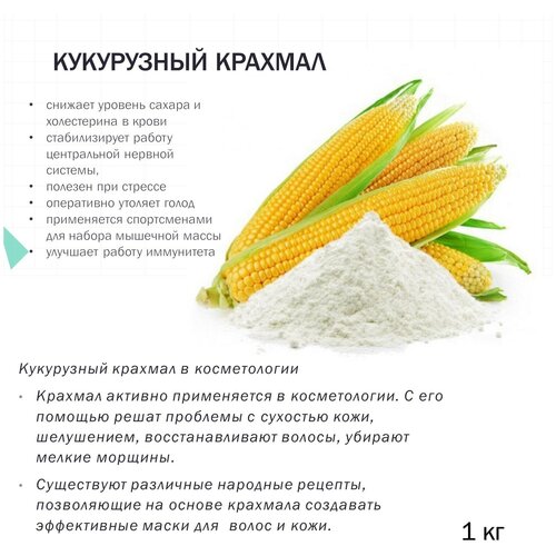 Кукурузный крахмал (без глютена, стабилизатор, эмульгатор, загуститель без ГМО), 400 грамм