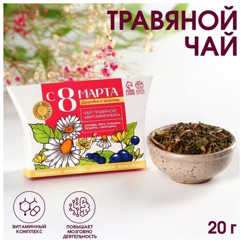 Чай травяной «С 8 марта»: крапива, мята, ромашка, люцерна, смородина, 20 г.