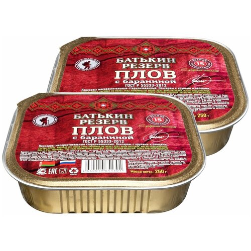 Плов с бараниной Батькин резерв 2 штуки по 250 гр ламистр гост Р55333-2012