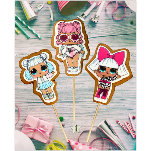Набор имбирных пряников Лол 3 шт., пряники на торт, топпер Лол, имбирный пряник