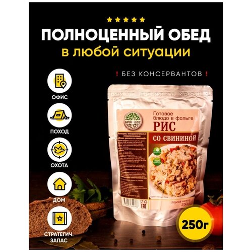 Готовое блюдо Рис со свининой и овощами 250 гр. / Еда в поход / На охоту / На рыбалку / Для туризма