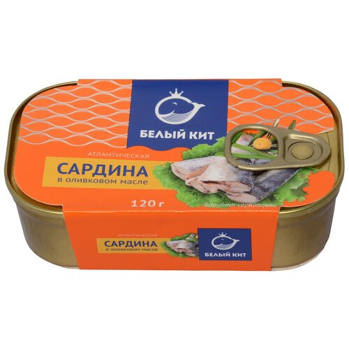 Рыбные консервы Сардина атлантическая,в оливковом масле Белый Кит, 120г