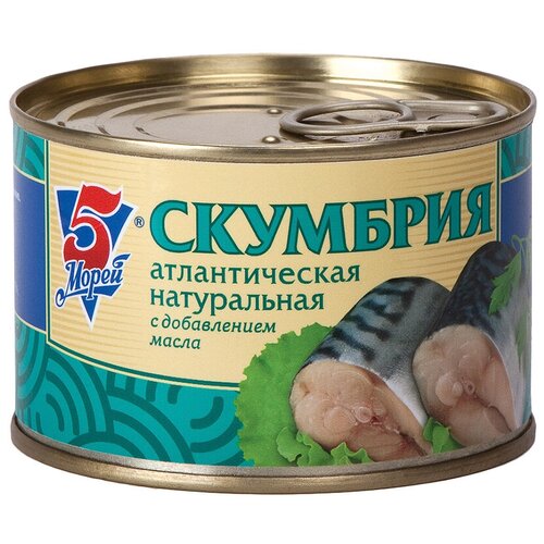 5 Морей Скумбрия атлантическая натуральная с добавлением масла, 750г(250 г по 3шт.)