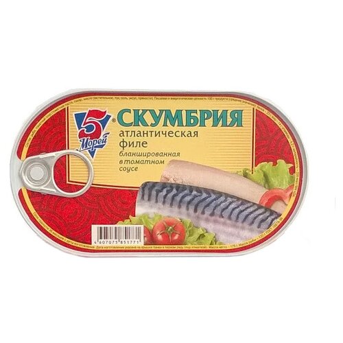 Скумбрия филе в т/с, 5 Морей,175г, Ханса