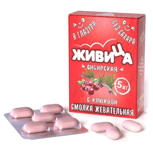 Смолка жевательная "Живица Сибирская" в глазури без сахара (с клюквой и пчелиным воском 5шт по 0.8гр