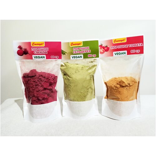 Краситель пищевой порошок (мука) свекла 150 г томат 150 г сельдерей 150 г VEGAN. Набор 15. Натуральный пищевой краситель