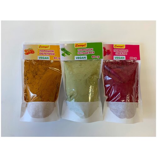 Краситель пищевой порошок (мука) свекла 80 г облепиха 80 г сельдерей 80 г VEGAN. Набор 37. Натуральный пищевой краситель