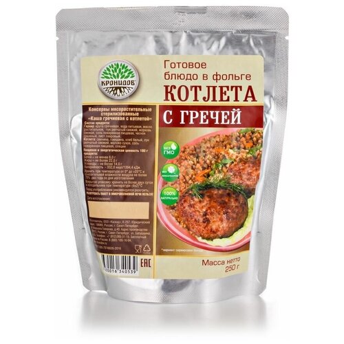 Консервы мясорастительные стерилизованные. Кронидов. Каша гречневая с котлетой, 250 гр