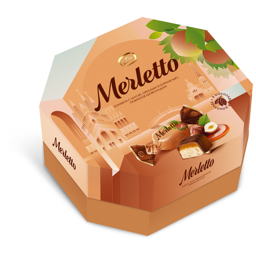 Конфеты "MERLETTO" с орехами с нугой, орехами и карамелью, покрытые шоколадом, комплект 2 шт по 150 г