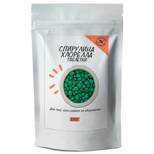 Спирулина и Хлорелла прессованная в таблетках / 200 таб. по 500 мг. / 100 гр, натуральная водоросль / Суперфуд